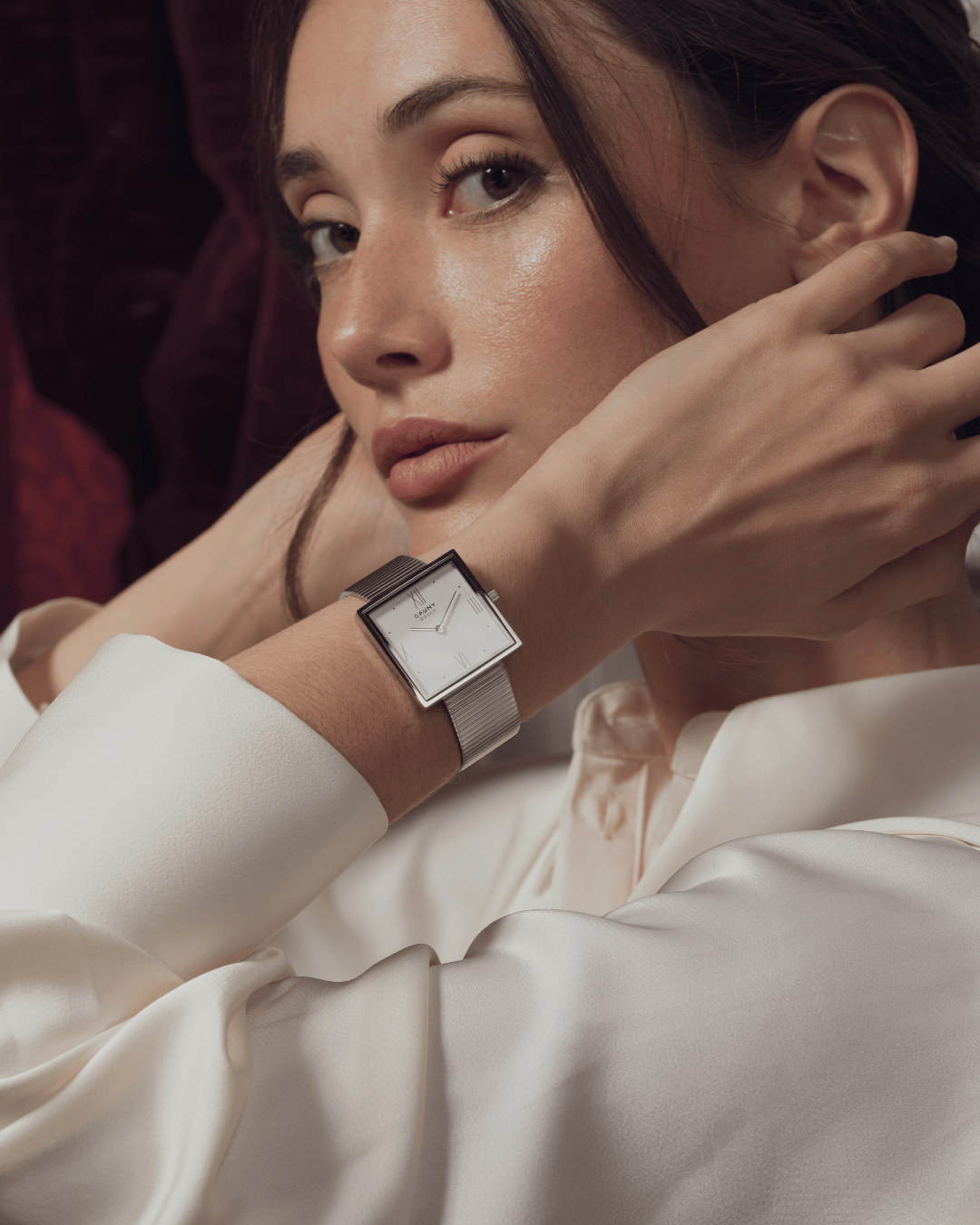 Al diseñar su primer reloj de pulsera, Rafael Moneo se inspiró en los dos relojes que había diseñado para las torres de Logroño y la Estación de Atocha. El resultado fue un reloj sencillo pero diferente. El brazalete se integra en la caja, garantizando un cuadrado perfecto, mientras que los altos y finos números romanos se utilizan para representar el tiempo como etapas del día. Si busca un reloj clásico pero irreverente, este es su reloj.