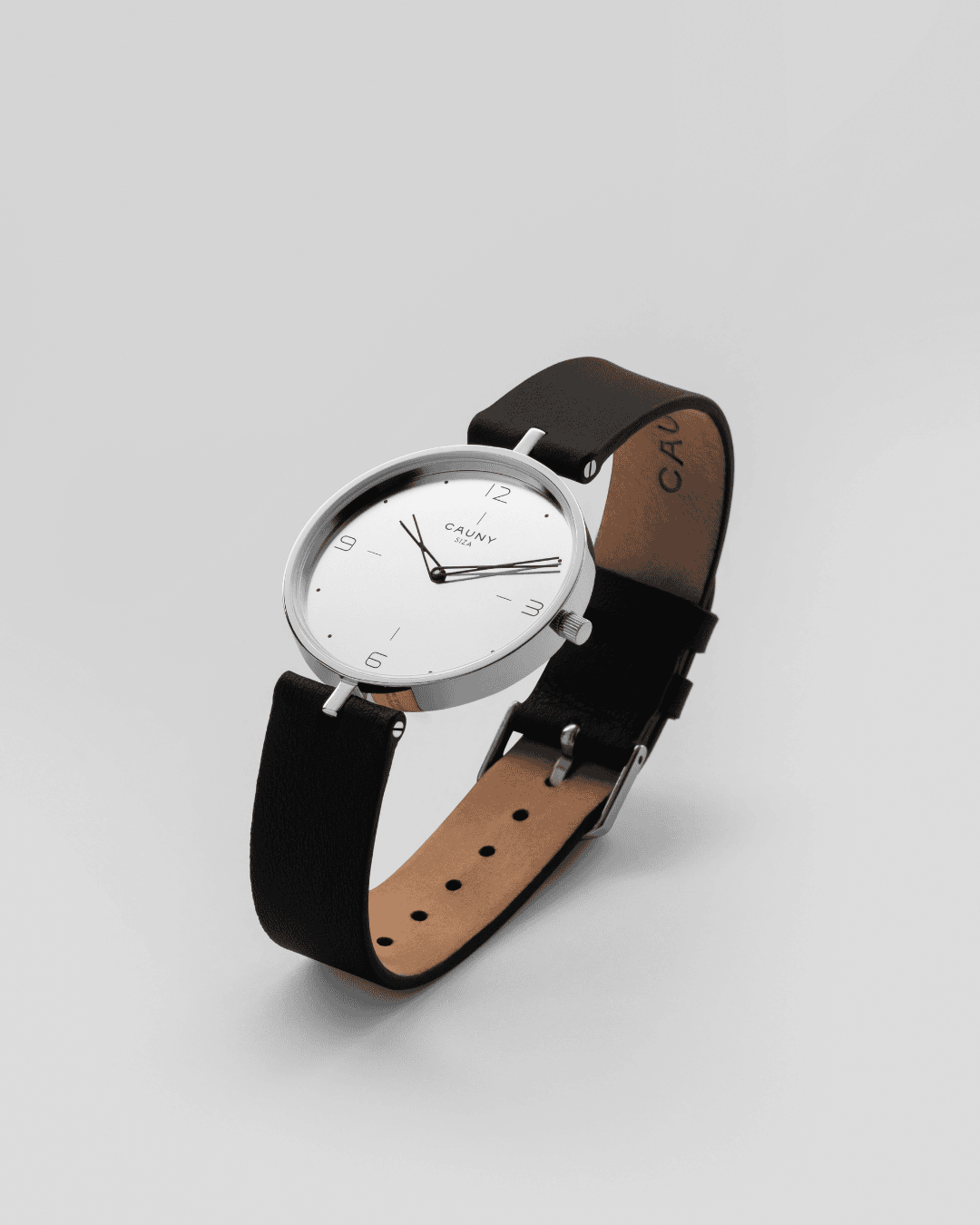 Álvaro Siza Vieira quería crear un reloj que "pareciera un reloj". El resultado fue mucho más que eso. Con su dibujo, Siza transformó una forma sencilla en una obra de arte. Sus manecillas únicas y su deslumbrante esfera de espejo lo distinguen, mientras que su caja de 30 mm lo hace ideal para muñecas pequeñas y amantes de las proporciones vintage. Ganador de premios internacionales de diseño, el Cauny Siza fue objeto de artículos elogiosos en revistas y periódicos de todo el mundo.
