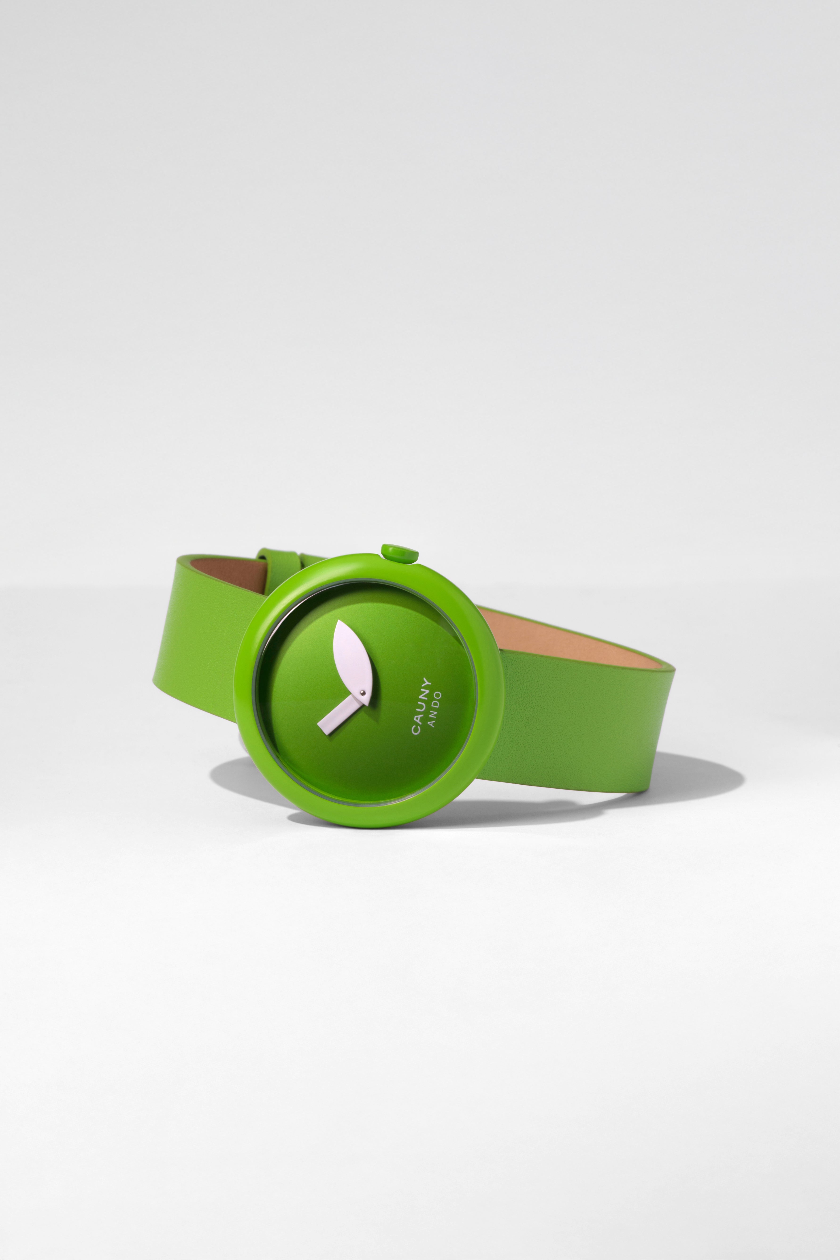 Projetado com base nas maçãs verdes que o Pritzker de 1995 costumava colocar do lado de fora de seus prédios, este relógio simboliza a juventude. Esta versão verde é a mais fiel ao conceito de Ando e prova que a juventude "não é uma fase da vida, mas um movimento do coração".